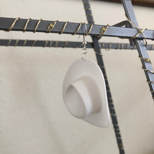 medium/large plastic cowboy hats are hung on silver hypoallergenic fish hook earrings!
