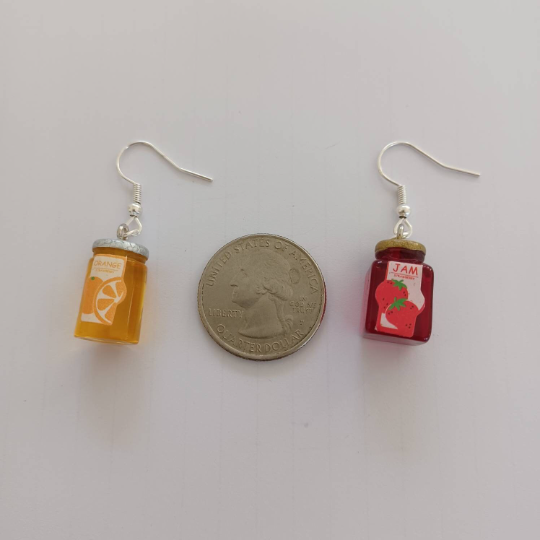 small jam jar charms are hung on silver hypoallergenic fish hook earrings!